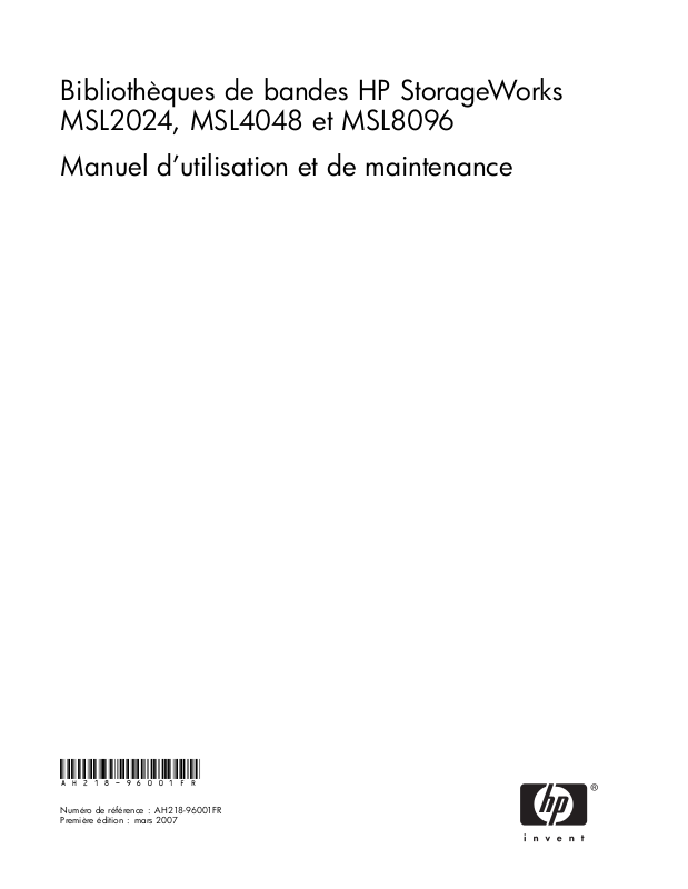 physique et fonctionnelle de la bibliothèque de bandes HP StorageWorks.