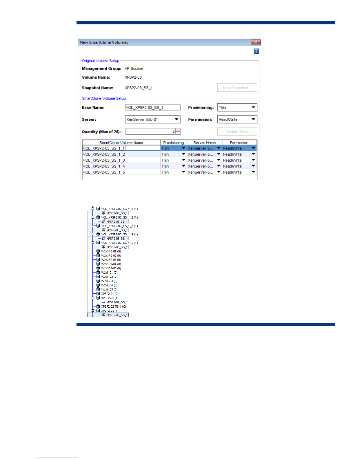 additional servers will need to be assigned access to the SmartClone volumes. Ensure that Thin Provisioning is selected and change the quantity to a max of 25. For this example, a quantity of 5 will