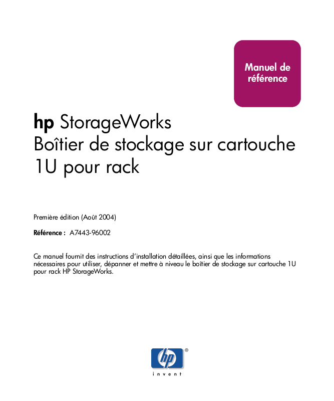 54Boîtier de stockage sur cartouche 1U pour rack - Manuel de référence