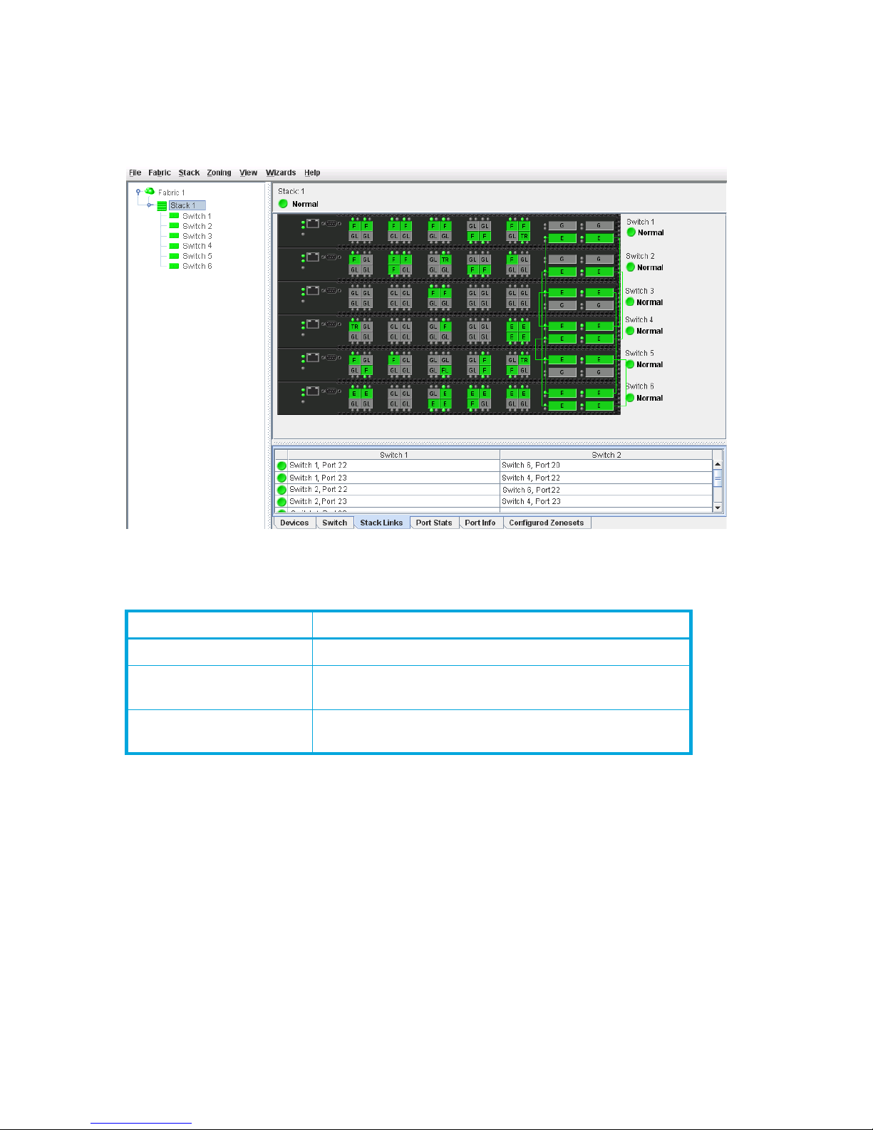 reference in the fabric tree above the switch names. Click a switch name or icon to display a different