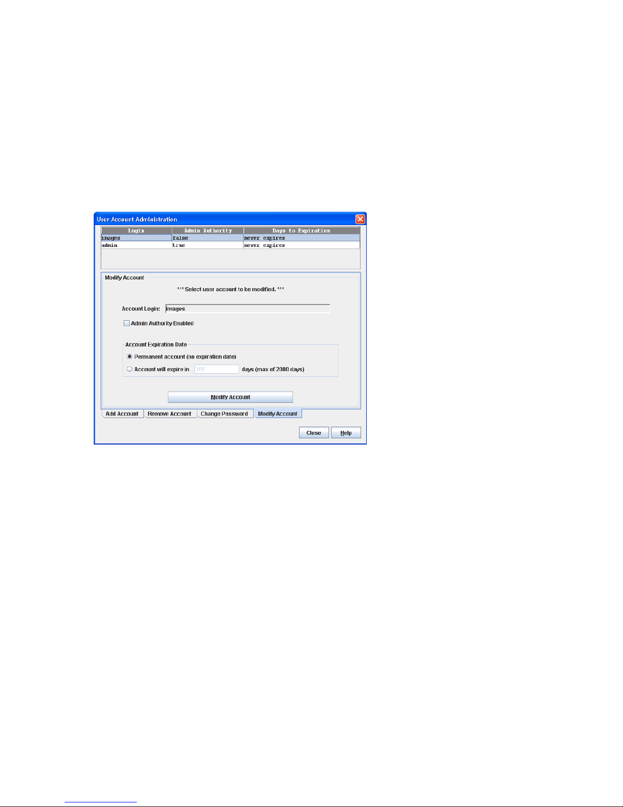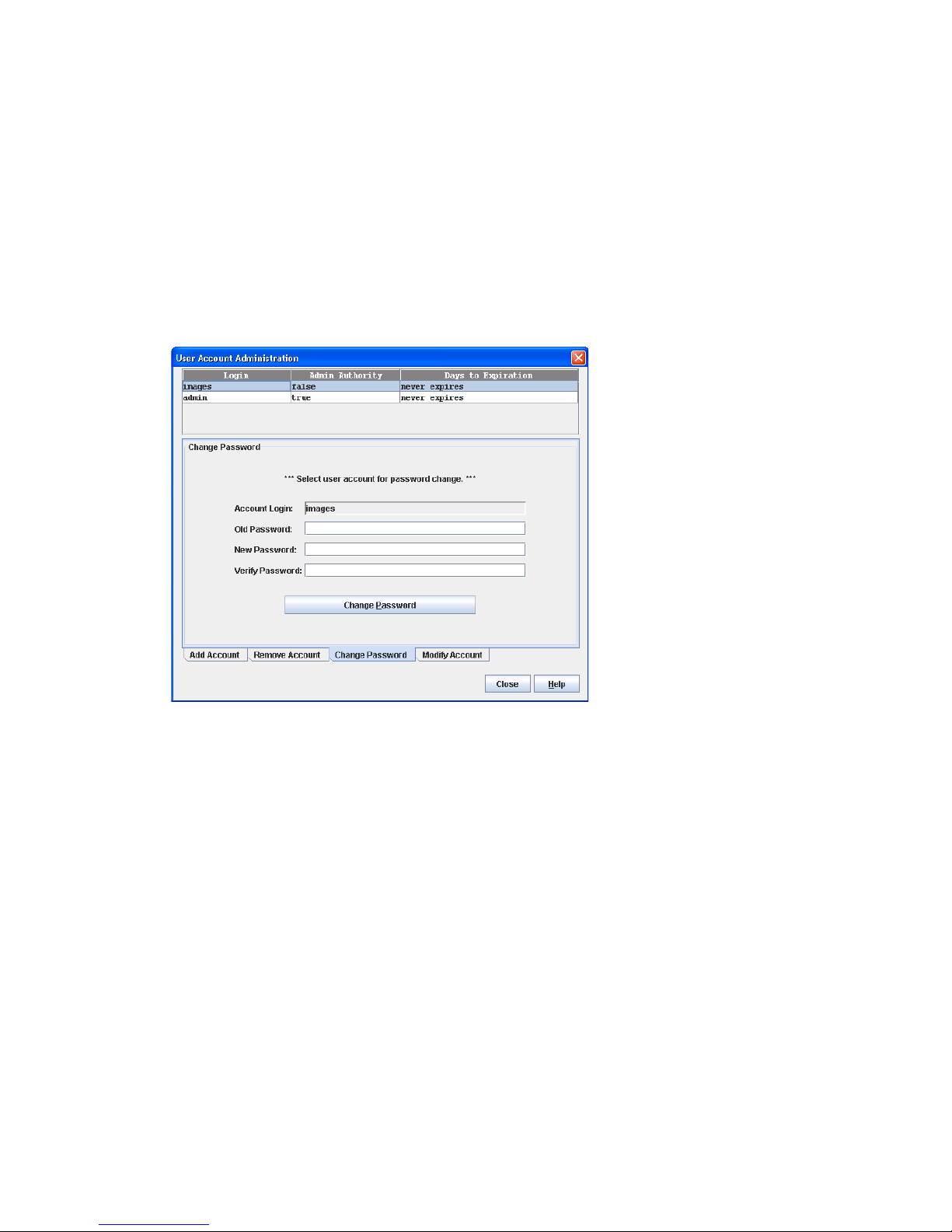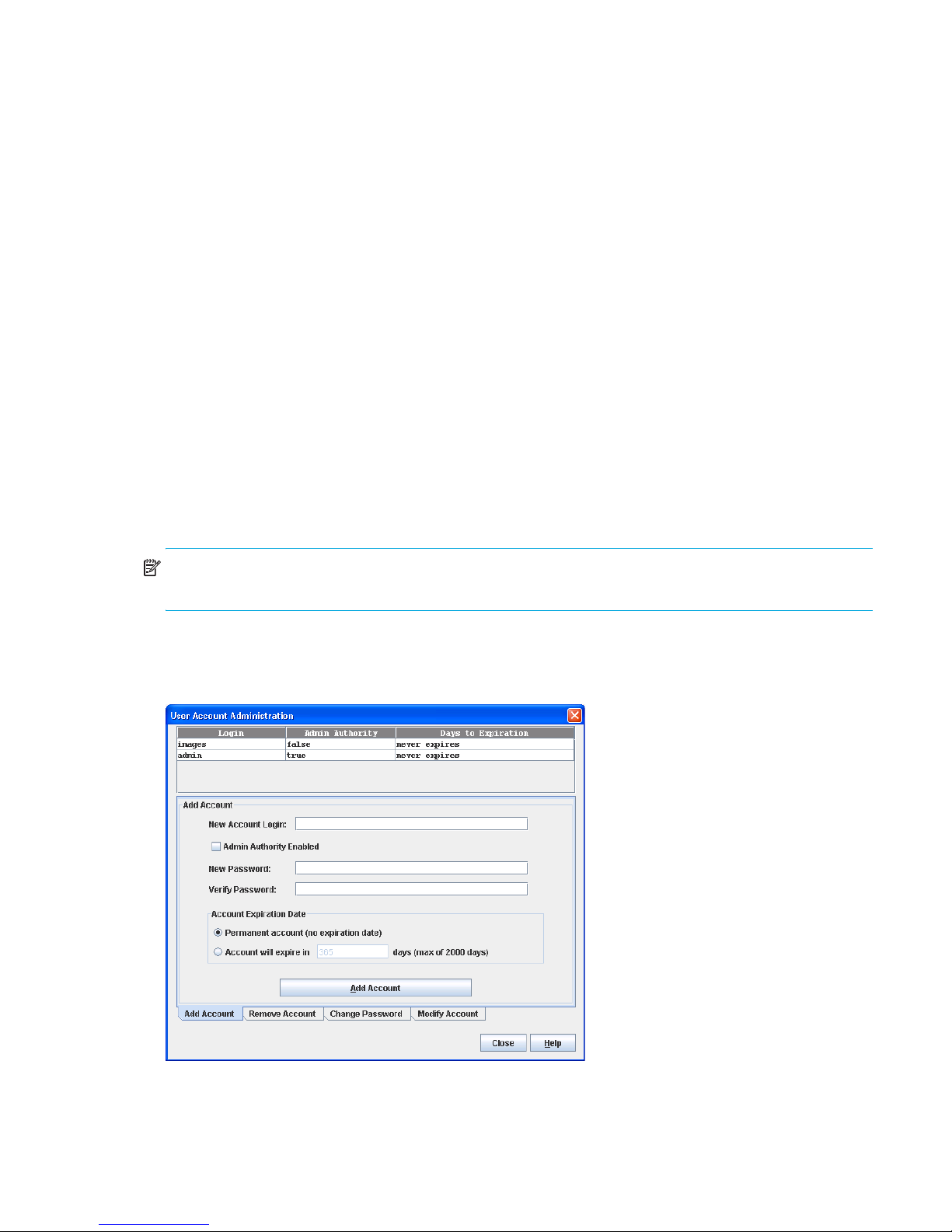 5. Click OK, and change the user account password. See ”Managing user accounts” (page 55) for more