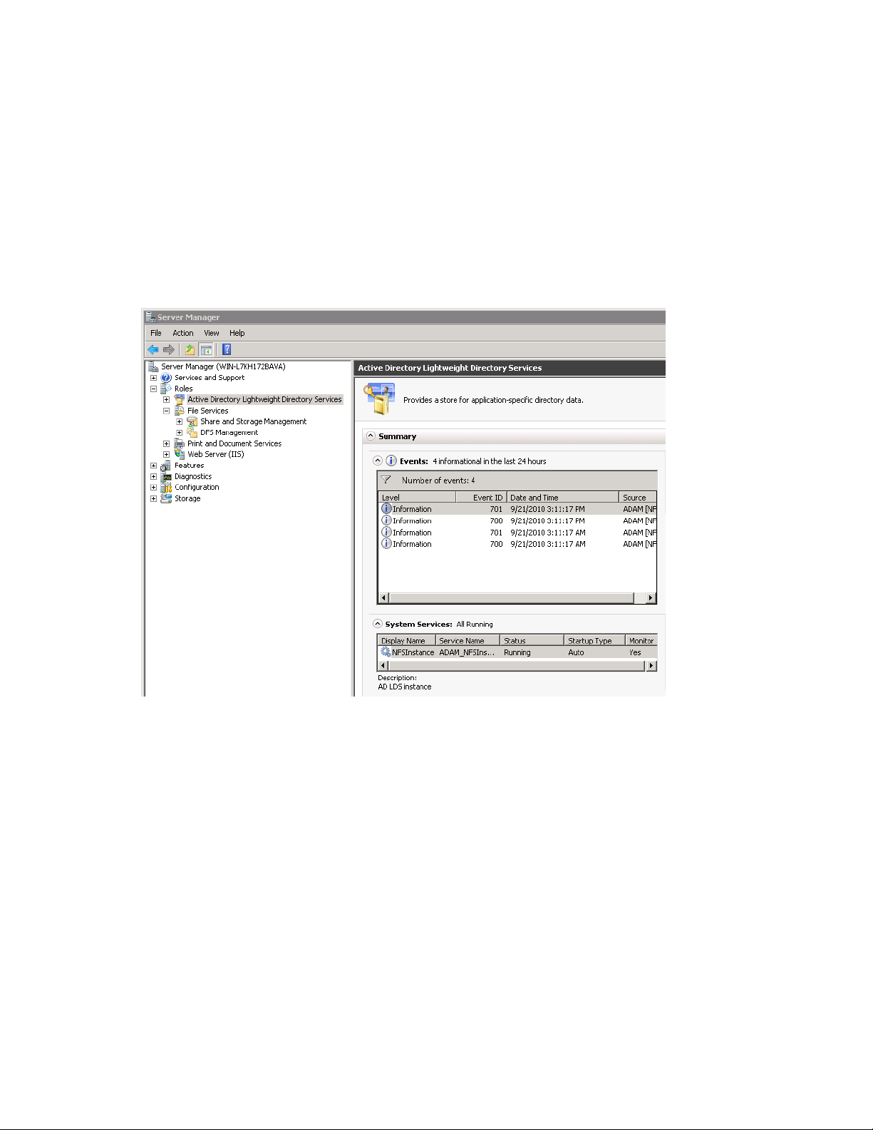 There may be errors from DFS and NFS logged in the Event Viewer after the storage system is configured.