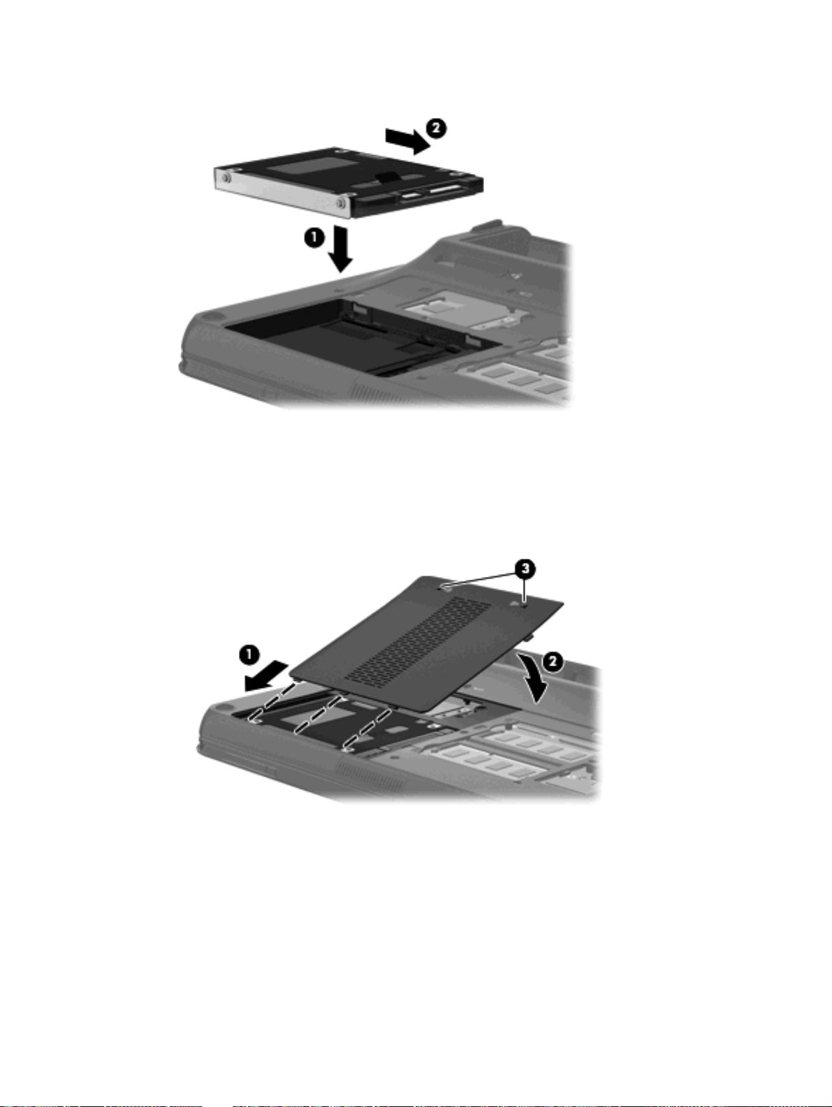 将缆锁插入笔记本计算机上的安全保护缆锁槽口 (3) ,然后用钥匙将其锁好。