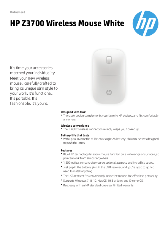 With up to 16 months of life on a single AA battery2, this mouse was designed