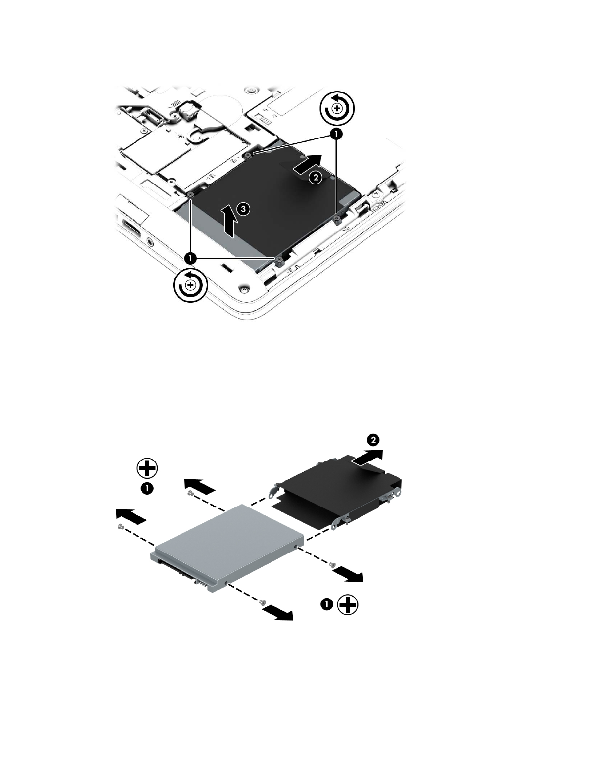 screws (1) – (4) that secure the heat sink to the system board, and then remove the heat sink (5).