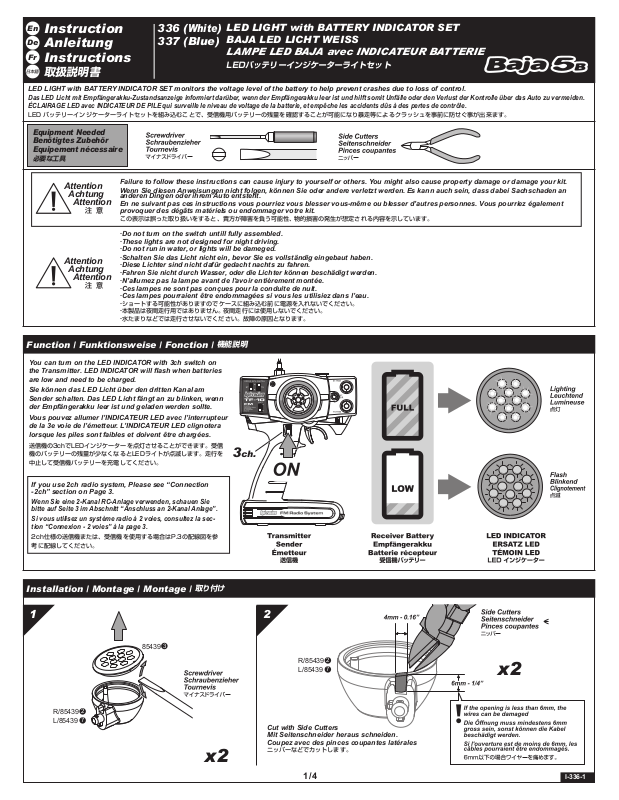 LED LIGHT with BATTERY INDICATOR SET monitors the voltage level of the battery to help prevent crashes due to loss of control.