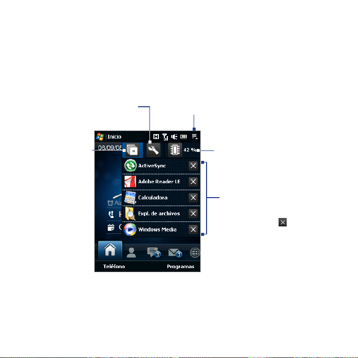 • Puntee en Inicio > Programas > ActiveSync, y después en Sincronizar. Para