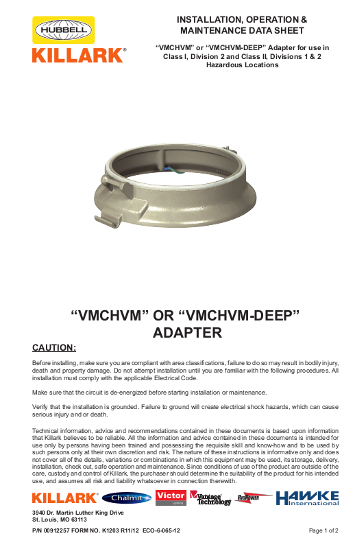 P/N 00912257 FORM NO. K1203 R11/12 ECO-6-065-12