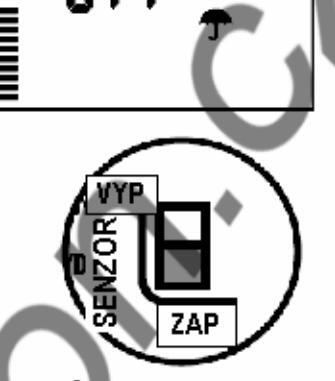 Přepnutím přepínače SENSOR do polohy VYP je čidlo vyřazeno a závlaha může být provozována trvale a v jakémkoliv režimu. V případě že není použito žádné čidlo, pozice SEN musí zůstat spojena propojovací svorkou nebo přepínač SENZOR musí být přepnut do polohy VYP.