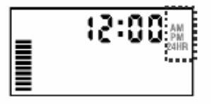 Tlačítkem en nebo en zadejte požadovaný časový režim AM/PM nebo 24HR a stiskněte tlačítko , tím přejdete na nastavení hodin.