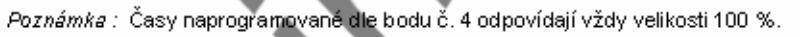 Pojmem startovací čas se rozumí okamžik, kdy odstartuje závlahový cyklus všech sekcí v pořadí a délkách nastavených v bodě 4. Jednotlivé sekce na sebe automaticky navazují v pořadí 1 až 8 a délka celého cyklu je dána součtem všech nastavených sekcí. Číselné označení 1 až 4 před startovacím časem označuje pak jeho pořadí a nikoliv číslo sekcel