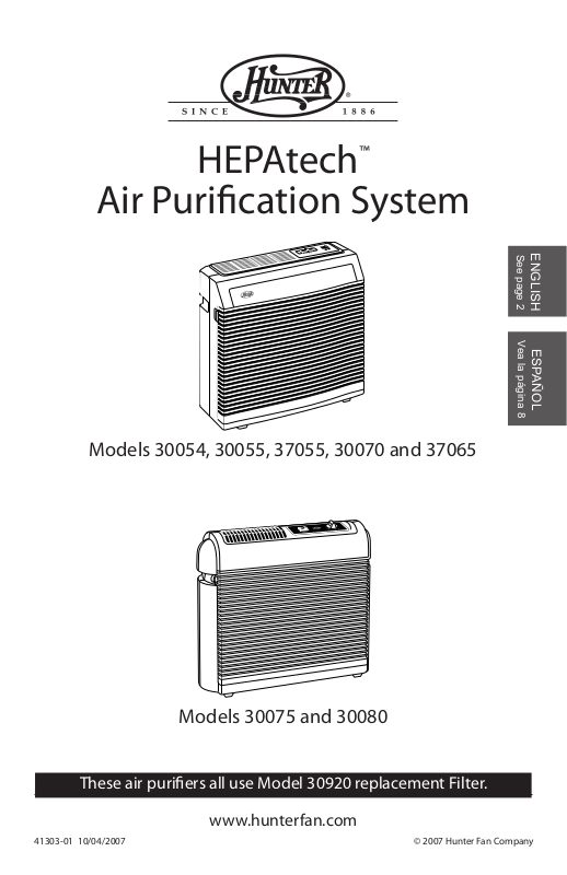 Thank you for purchasing the HEPAtech™ Air Purication System from Hunter Fan Company.