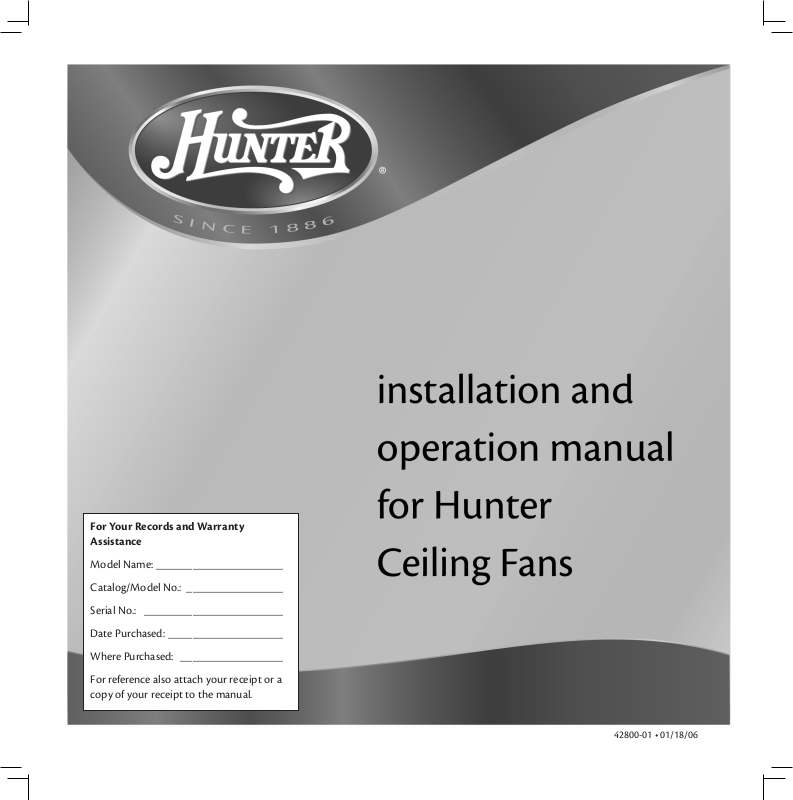 Your new Hunter® ceiling fan is an addition to your home or oce that