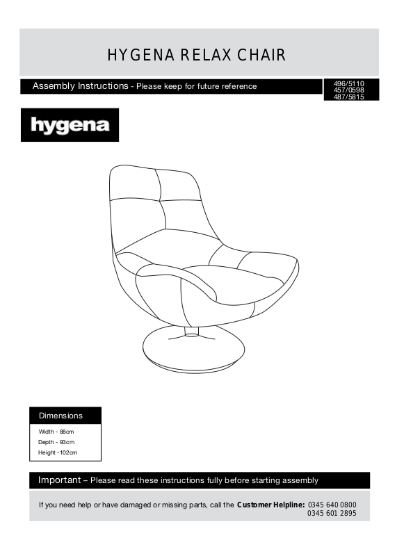 Hygena 496-5110, 457-0598, 487-5815 Instruction manual