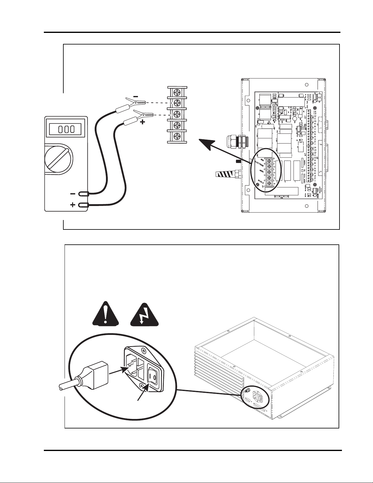 caution when working near live electrical circuits. Dangerous voltages exist inside
