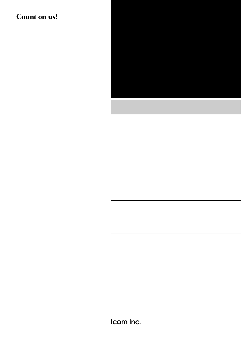 Icom, Icom Inc. and the logo are registered trademarks of Icom Incorporated (Japan) in the United