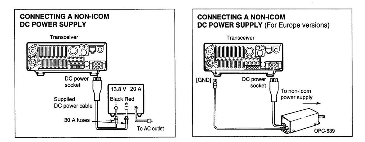 ANEVER apply AC to the [DC13.8V] socket on the transceiver rear panel. This could cause a fire or ruin the transceiver.