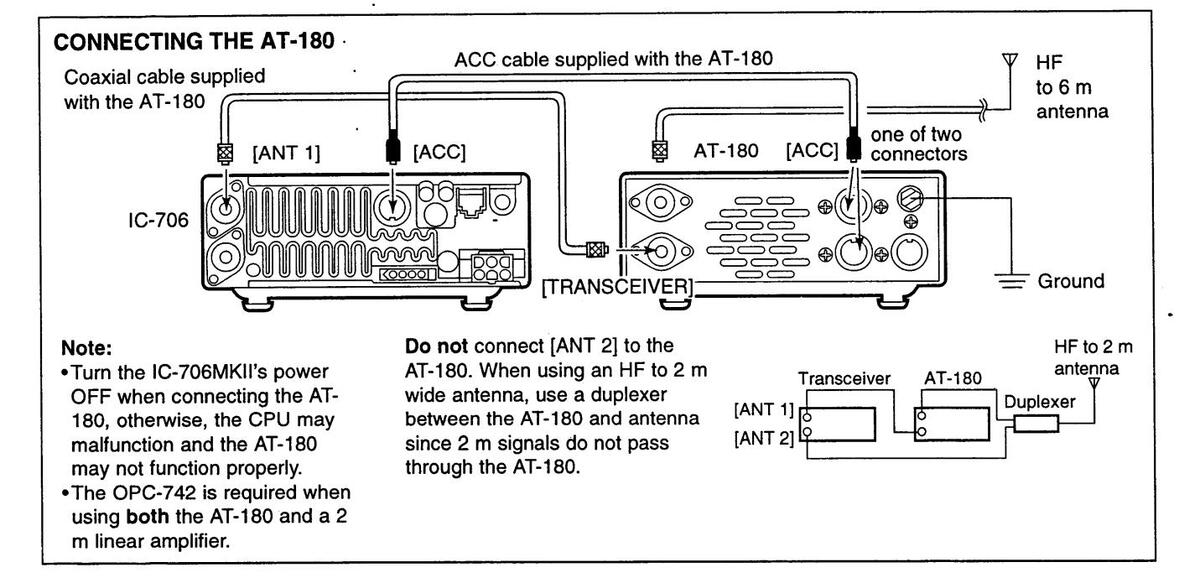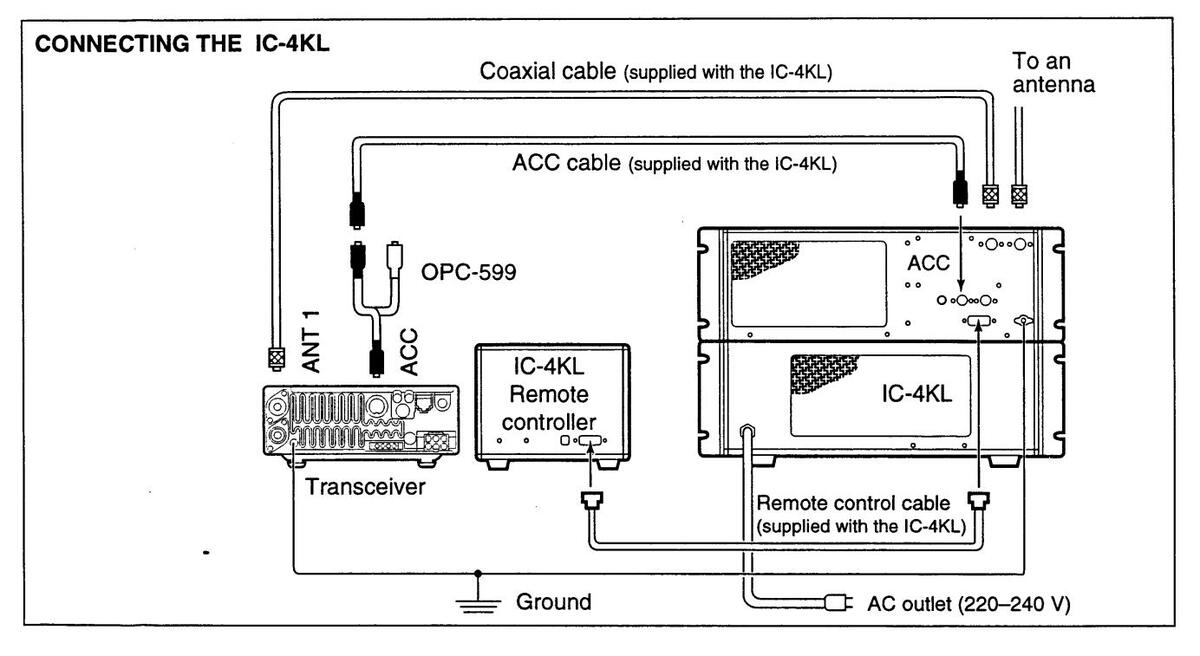 BE CAREFUL! If a linear amplifier is connected, set the transceiver's RF output power to less than the linear amplifier's maximum input level, otherwise, the linear amplifier will be damaged.