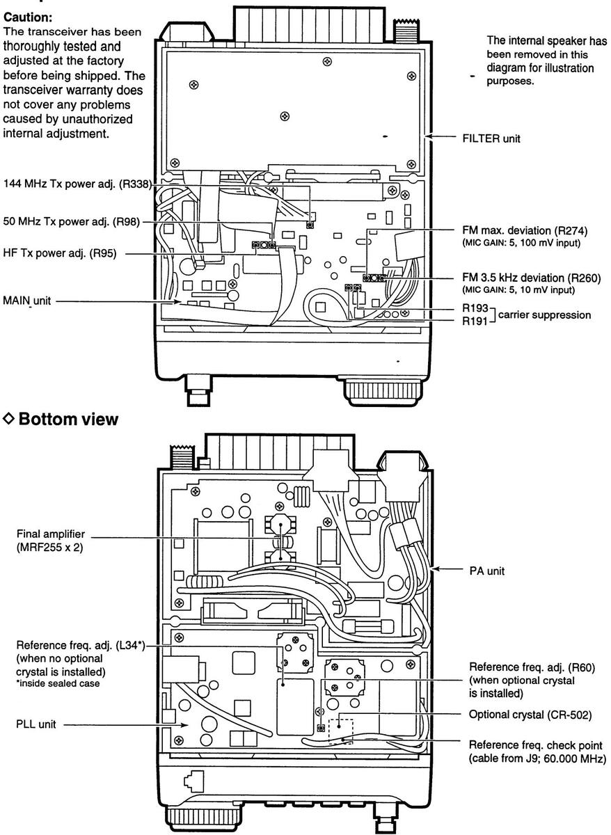 ANEVER let metal, wire or other objects touch any internal part or connectors on the rear panel of the transceiver. This will cause electric shock.
