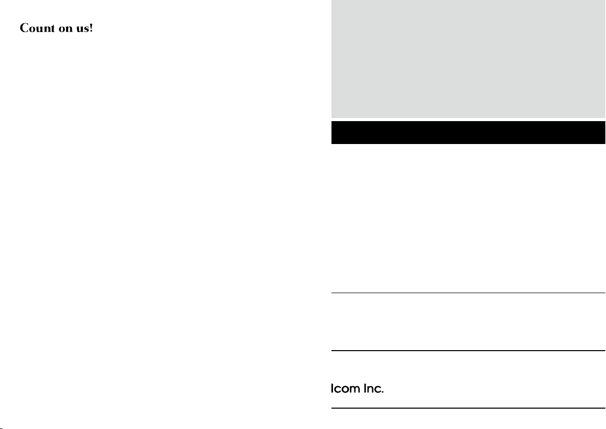 Icom, Icom Inc. and th e logo are regist ered trade marks o f Icom