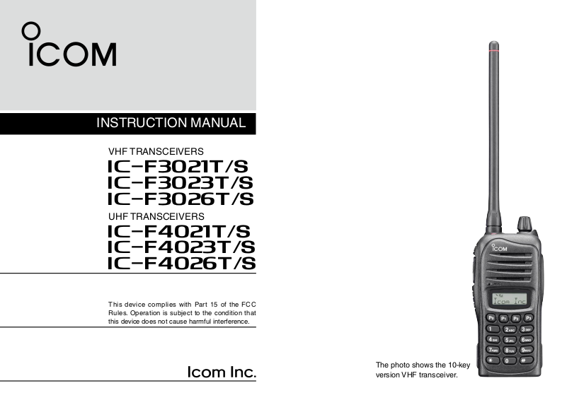 TRANSCEIVERS and the IC-F4021T/S, IC-F4023T/S, ICF4026T/S UHF TRANSCEIVERS