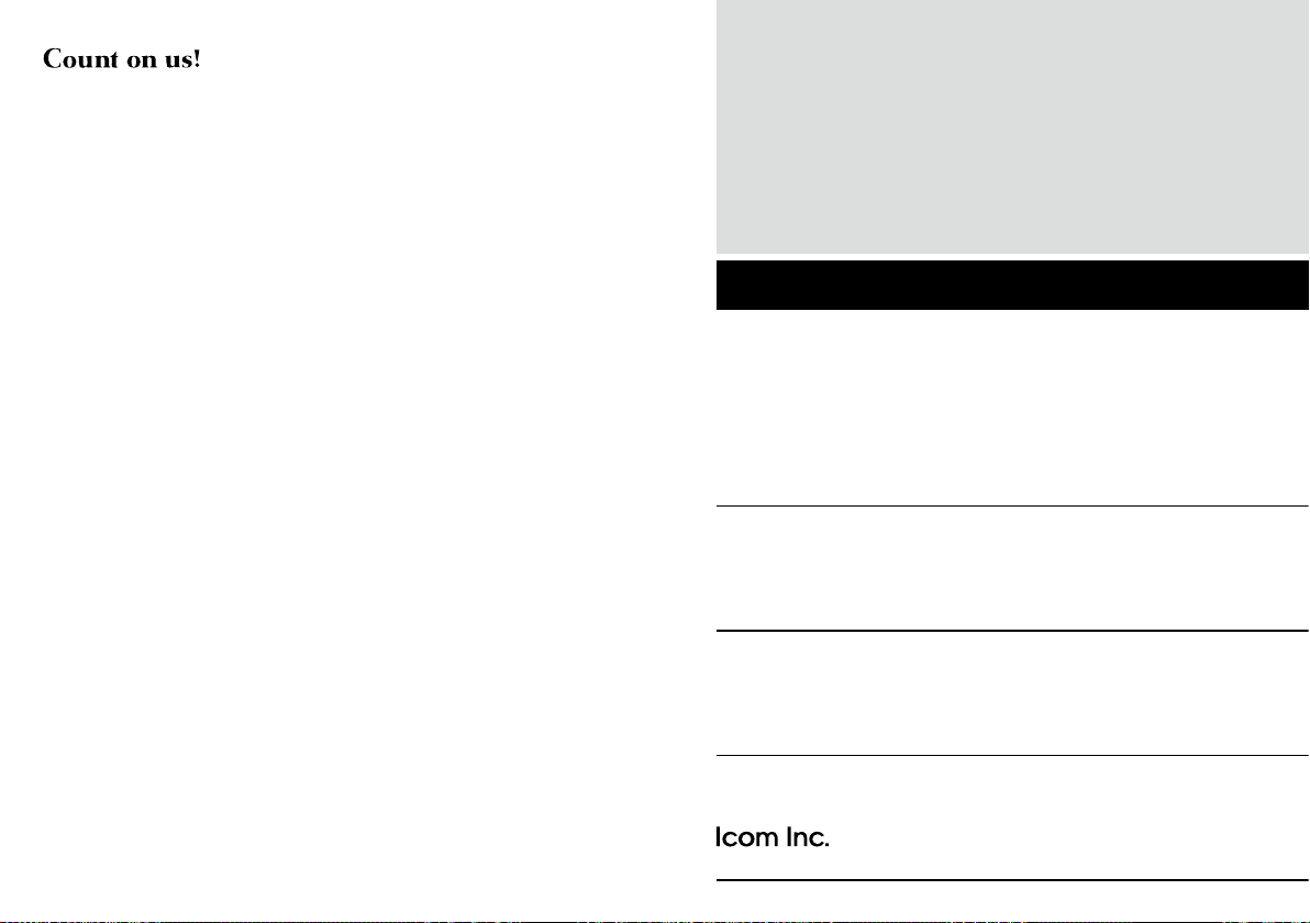 Icom, Icom Inc. and the Icom logo are registered trademarks of Icom Incorporated (Japan) in Japan, the United States, the United Kingdom, Germany,