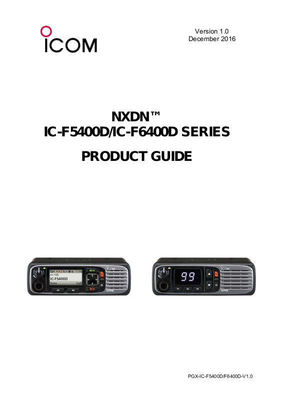 This product guide is made to promote our new products, the IC-F5400D/IC-F6400D transceivers. The new