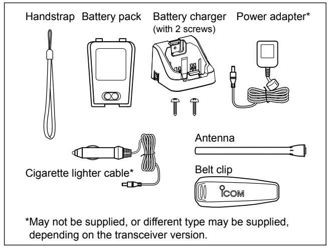 NOTE: If the transceiver's waterproof protection appears defective, carefully clean it with a soft, damp (fresh water) cloth, then dry it before operating. The transceiver may lose its waterproof protection if the case, jack cap, or connector cover is cracked or broken, or the transceiver has been dropped. Contact your lcom distributor or your dealer for advice.