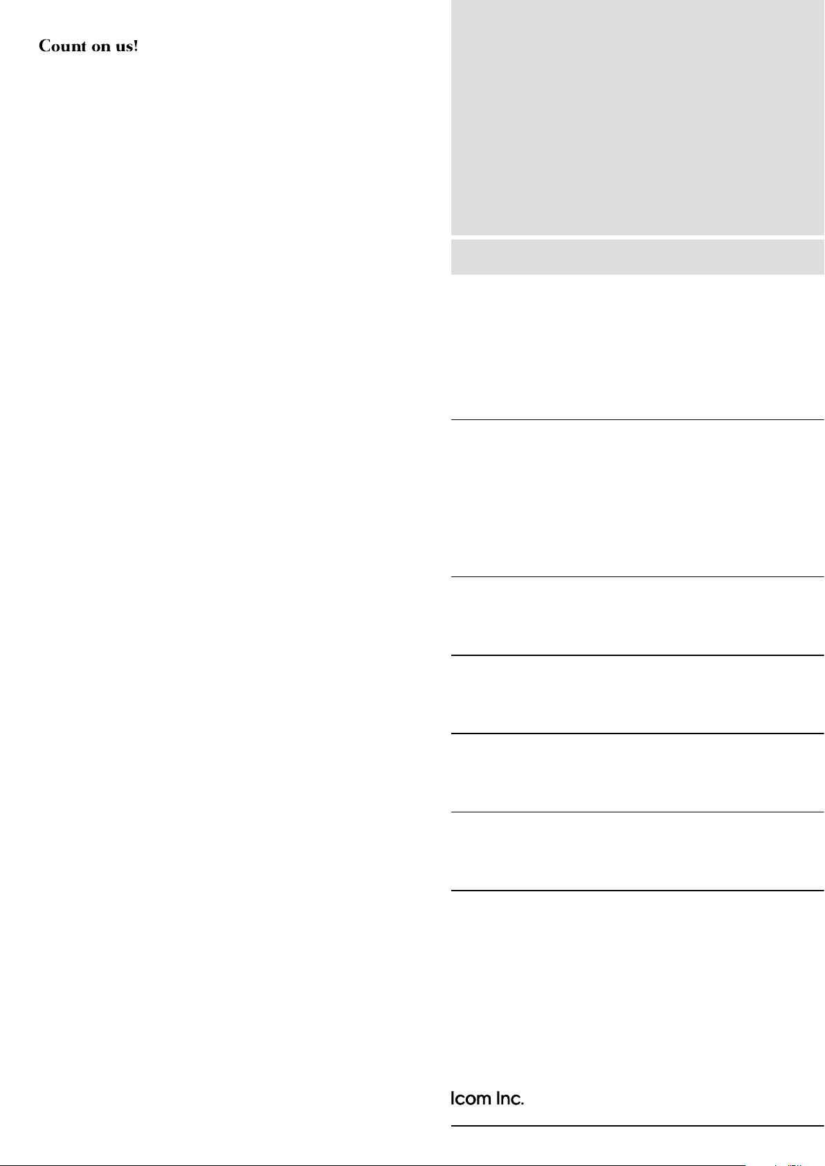 Icom, Icom Inc. and the Icom logo are registered trademarks of