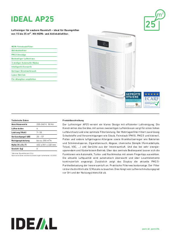 Der Luftreiniger AP25 vereint ein klares Design mit effizienter Luftreinigung. Die