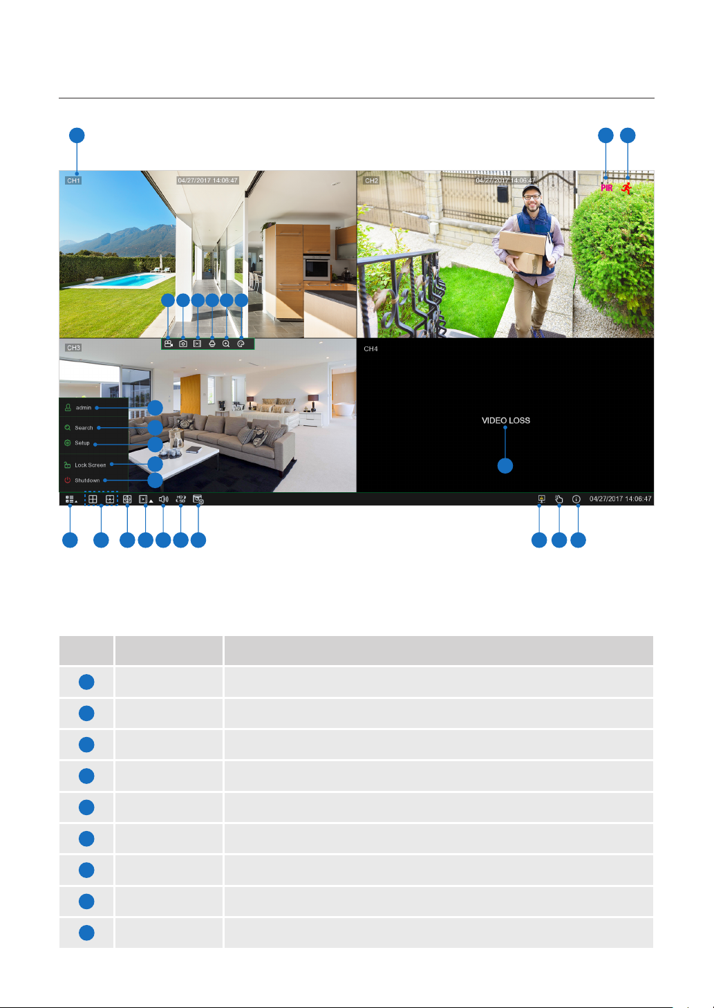 • Kliknij kanał na ekranie podglądu na żywo, aby otworzyć pasek szybkiego działania aparatu.