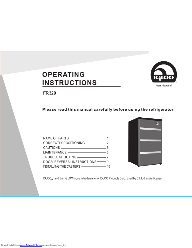 Igloo FR329 Operating Instructions Manual