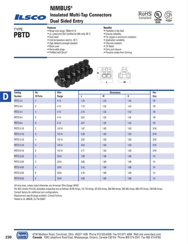 Ilsco NIMBUS Insulated Multi-Tap Connectors Catalog Page