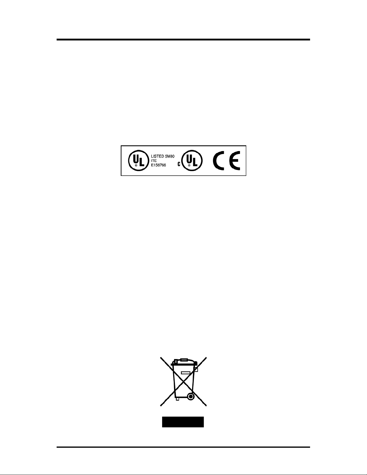 UL/CUL: Listed to Safety of Information Technology Equipment, including