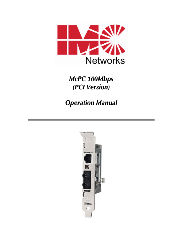 errors that may appear in this document. McPC 100Mbps is a trademark of IMC Networks. Other brands or product