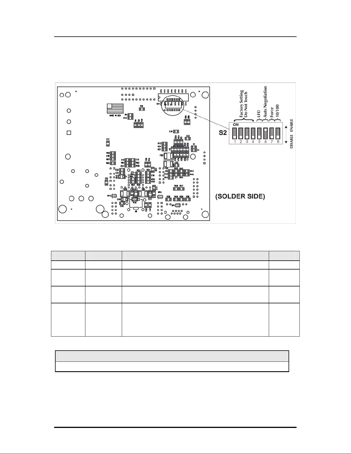 The table below shows the DIP Switch settings for McPC 10/100: