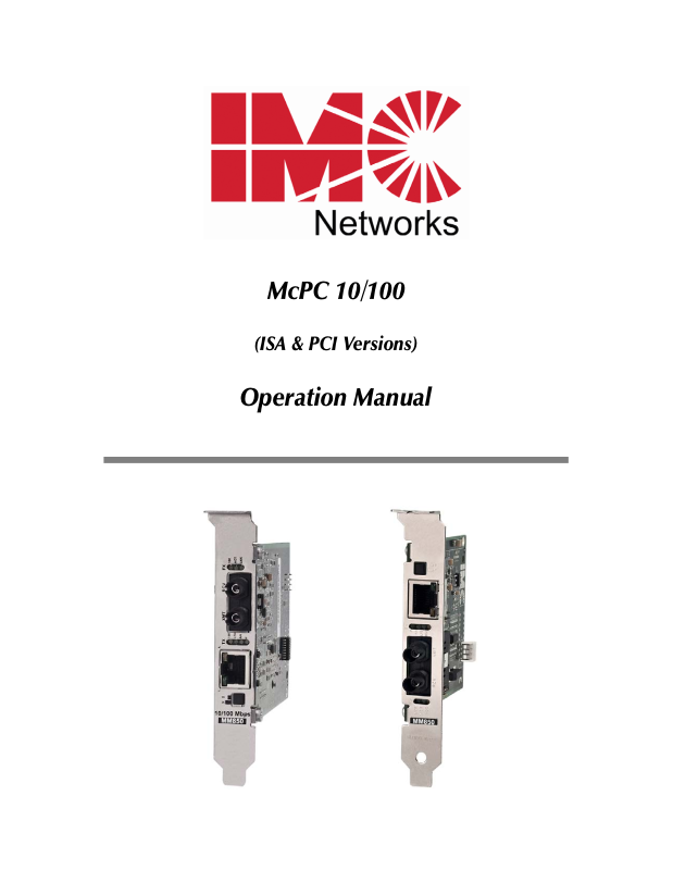 errors that may appear in this document. McPC 10/100 is a trademark of IMC Networks. Other brands or product names