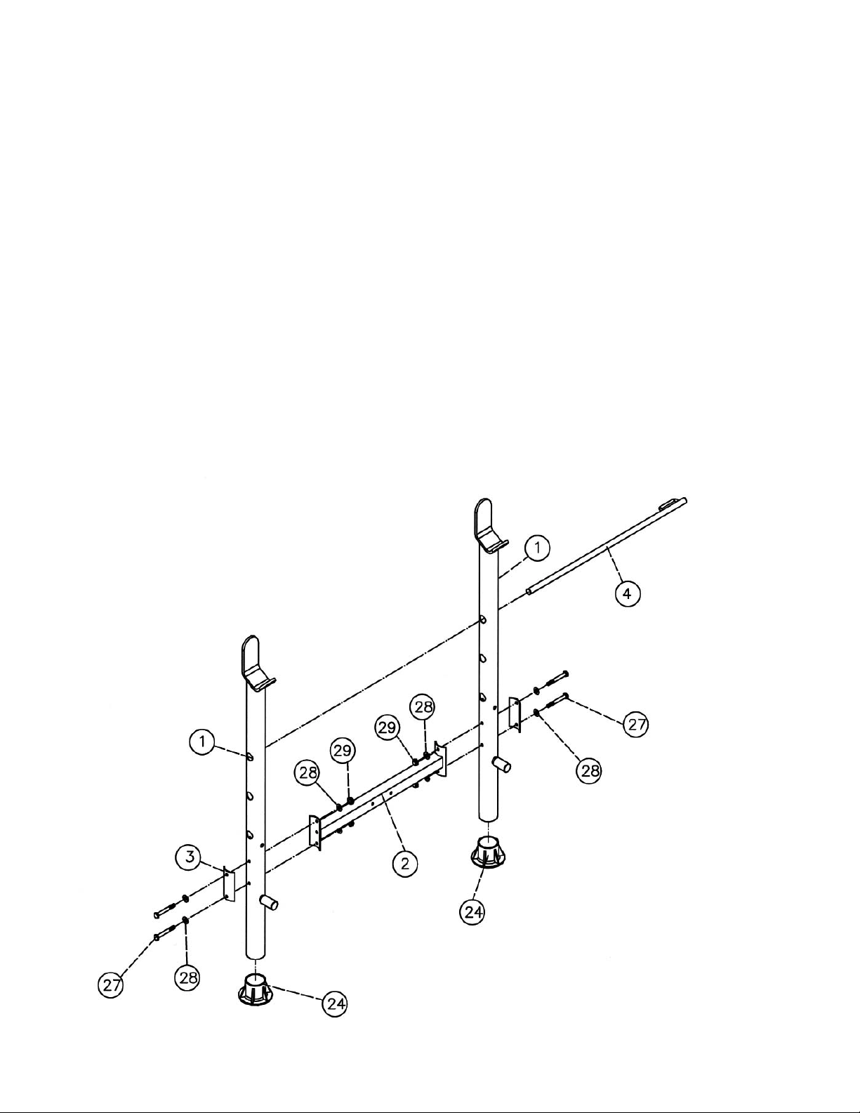 B.) Connect the two Rear Upright Beams by a Cross Brace (#2) in the Mid-span. Secure