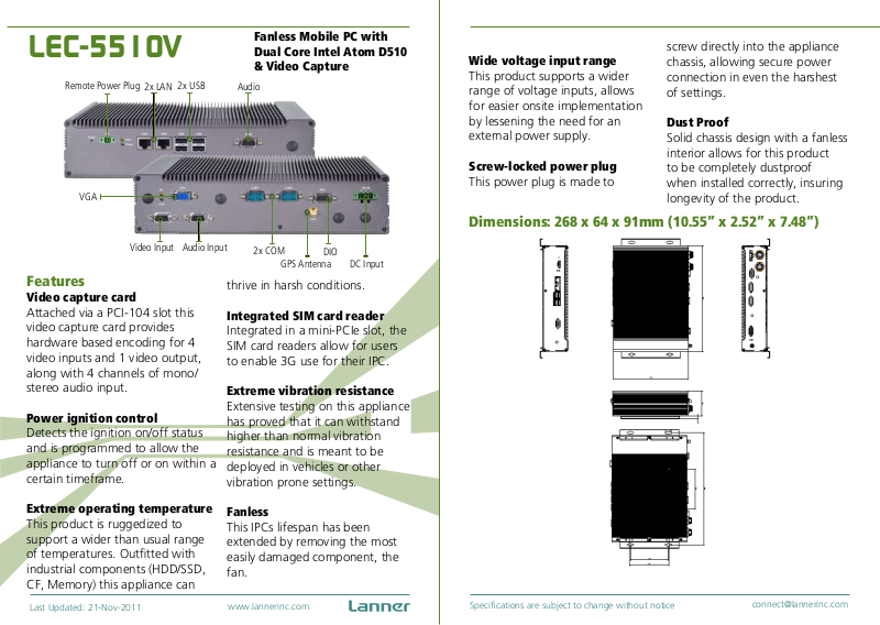 LEC-5510V Fanless mobile pc with with Intel Dual Core