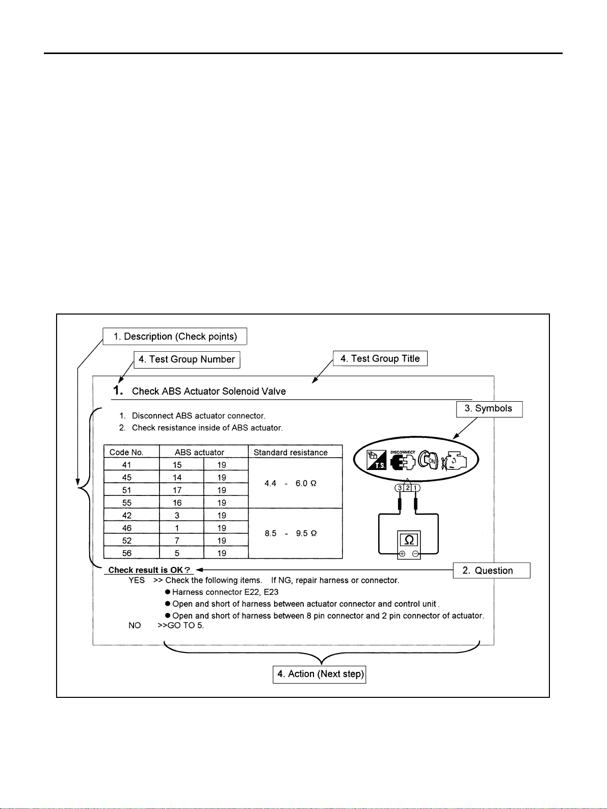 ●Do not use electrical test equ ipment o n any circu it related to the SRS unless in structed to in this