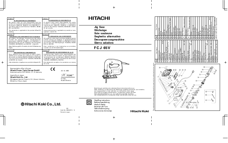 documents normalisés EN60745, EN55014 et EN610003 en accord avec les Directives 73/23/CEE, 89/336/CEE