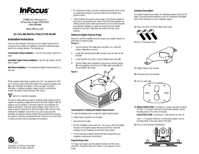 ** Hardware item (F) is what secures the Digital Projector Mount to your
