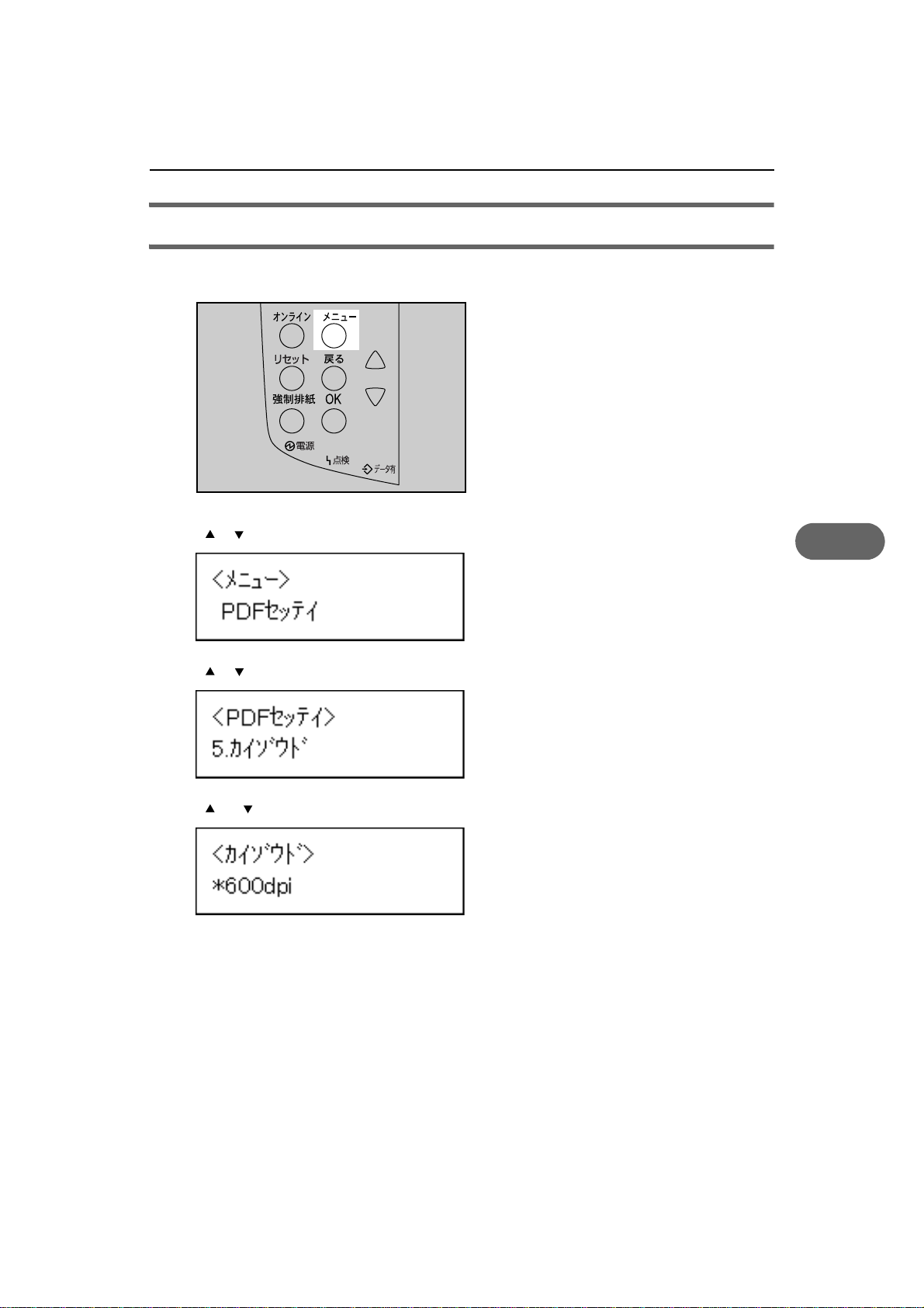 [][ ]キーを押して、「ヒョウジゲンゴ」を表示させ、[OK]キーを押