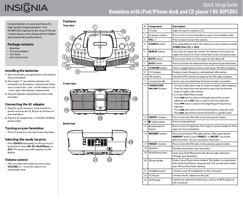 Boombox with iPod/iPhone dock and CD player I NS-BIPCD02