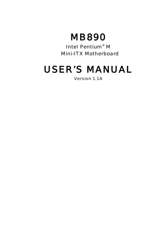 The MB890 Mini ITX board incorporates the Intel® advanced 855GME Chipset