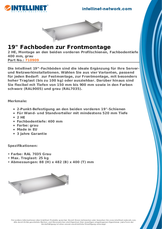 Die Intellinet 19“-Fachböden sind die ideale Ergänzung für Ihre Serverund Netzwerkinstallationen. Wählen Sie aus vier Varianten, passend