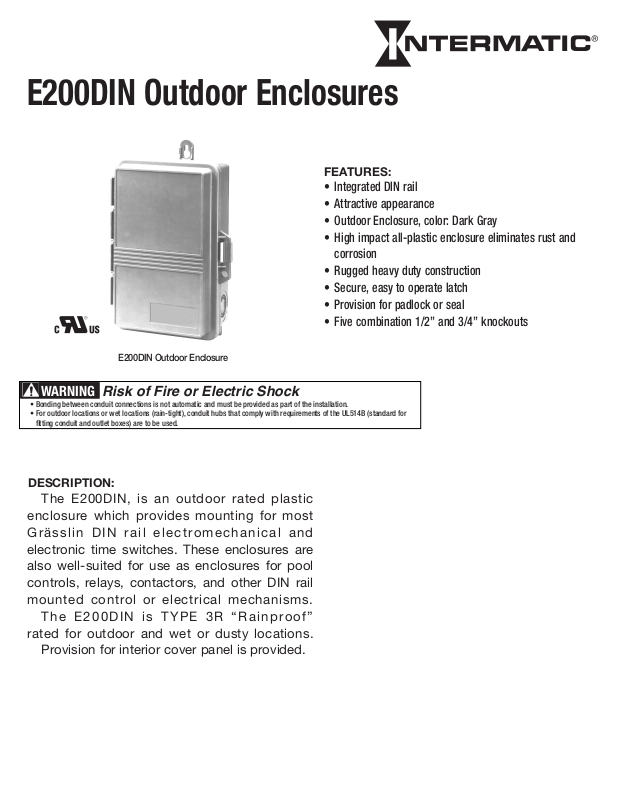 • For outdoor locations or wet locations (rain-tight), conduit hubs that comply with requirements of the UL514B (standard for