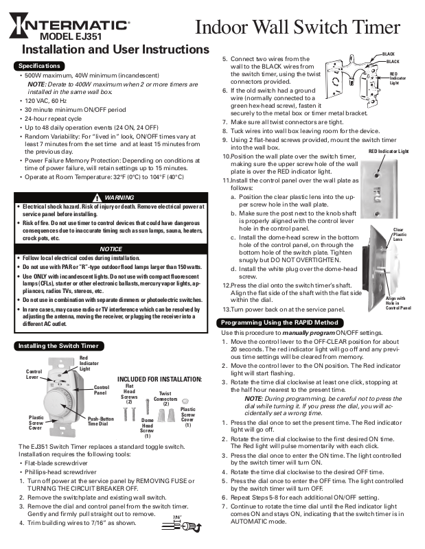INTERMATIC INCORPORATED WILL NOT BE LIABLE FOR INCIDENTAL OR CONSEQUENTIAL DAMAGES. SOME STATES DO NOT ALLOW THE EXCLUSION OR LIMITATION OF INCIDENTAL OR CONSEQUENTIAL