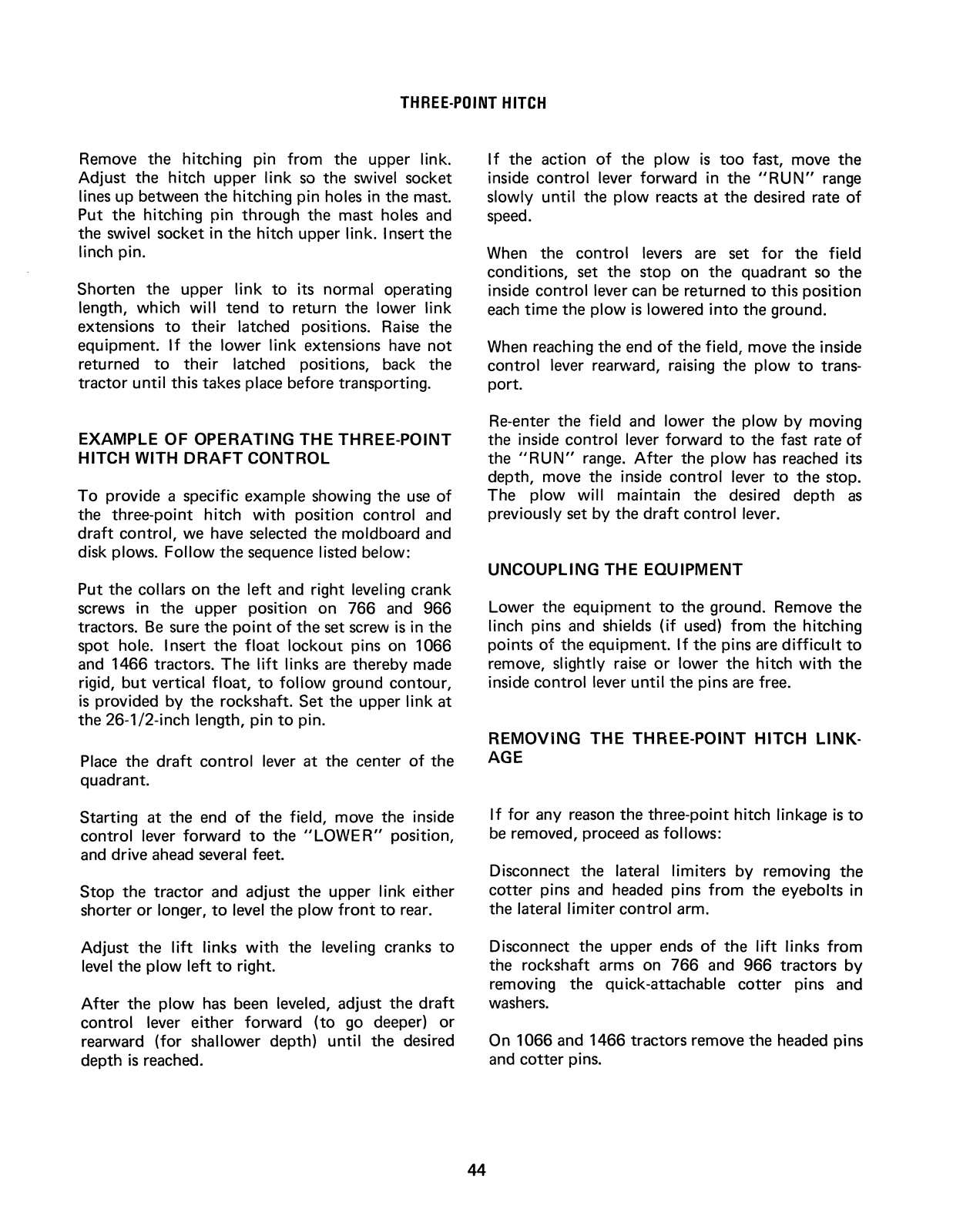 International 766, 966, 1066, 1466 Operator's Manual