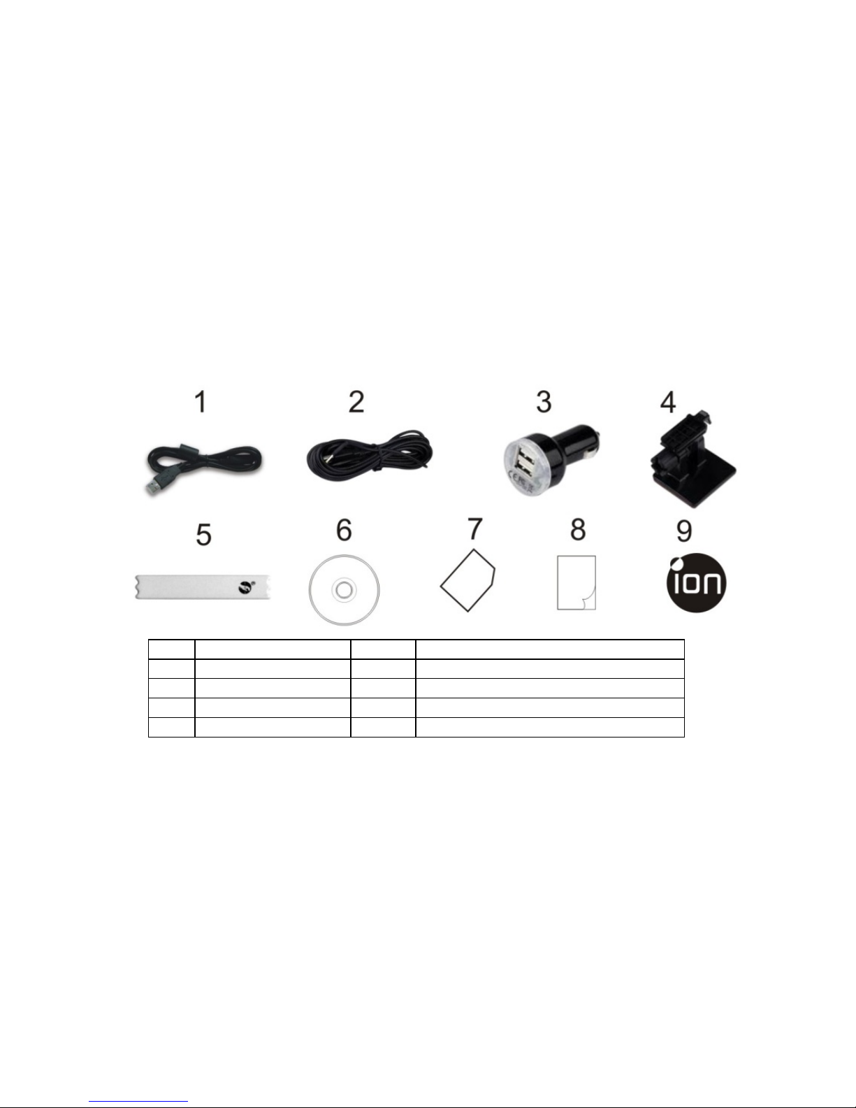 3 Adattatore USB per auto 4 Supporto per parabrezza